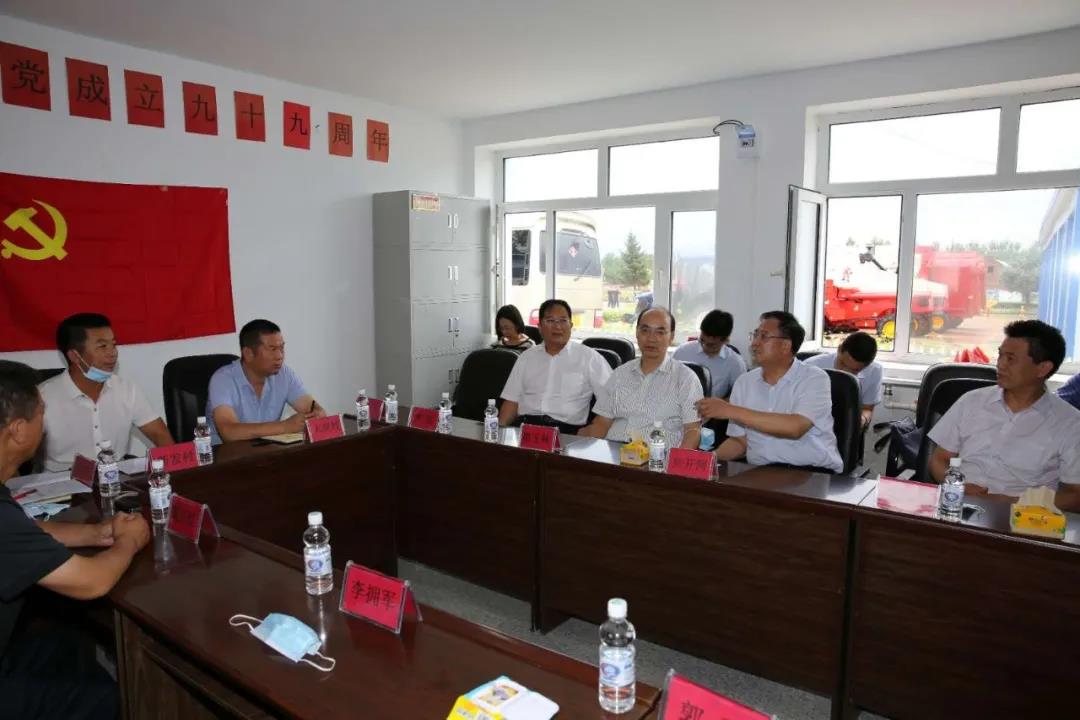 在興隆鄉(xiāng)新建村,焦開河聽取了大崗村、新發(fā)村和新建村關(guān)于農(nóng)機(jī)服務(wù)隊項目運(yùn)行情況、收益和減貧的情況介紹,詳細(xì)了解了項目幫扶機(jī)制及未來發(fā)展想法。焦開河表示,農(nóng)機(jī)服務(wù)隊不僅實現(xiàn)了對貧困戶的幫扶,還可以通過創(chuàng)收、維護(hù)、解決就業(yè),帶動農(nóng)業(yè)機(jī)械化發(fā)展,是一個可持續(xù)項目。他強(qiáng)調(diào),下一步要整合好各村農(nóng)機(jī)服務(wù)隊,實現(xiàn)更大規(guī)模的連片種植。焦開河專門叮囑集團(tuán)公司派駐大崗村第一書記吳寶明,要充分發(fā)揮駐村第一書記作用,抓好黨建工作,積極培育致富帶頭人,為大崗村后續(xù)發(fā)展奠定好基礎(chǔ)。